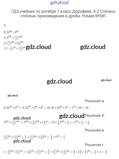 Ответ на задание 581 Учебник Алгебра за 7 (седьмой) класс Дорофеев, Суворова, Бунимович Академический школьный учебник 2020
