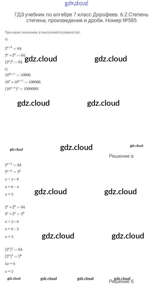 Ответ на задание 585 Учебник Алгебра за 7 (седьмой) класс Дорофеев, Суворова, Бунимович Академический школьный учебник 2020