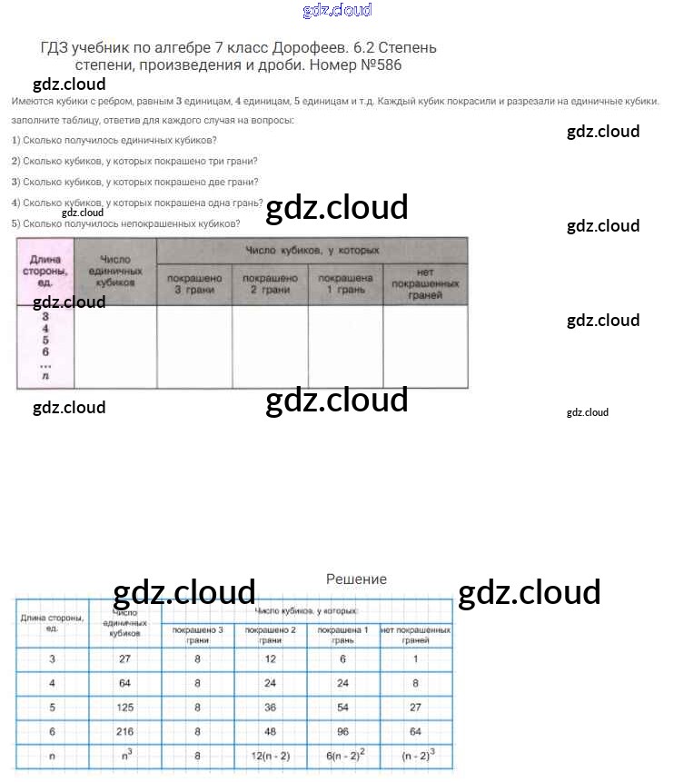 Ответ на задание 586 Учебник Алгебра за 7 (седьмой) класс Дорофеев, Суворова, Бунимович Академический школьный учебник 2020