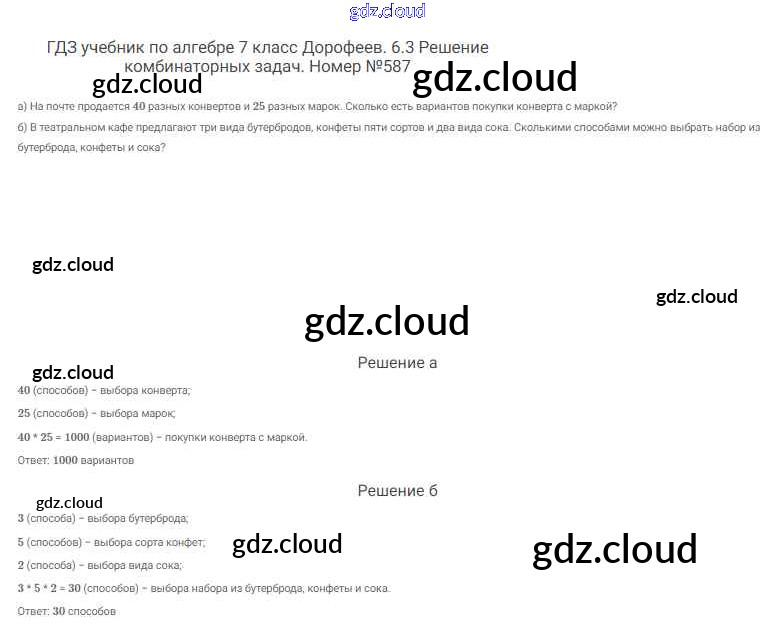 Ответ на задание 587 Учебник Алгебра  за 7 (седьмой) класс Дорофеев, Суворова, Бунимович Академический школьный учебник  2020