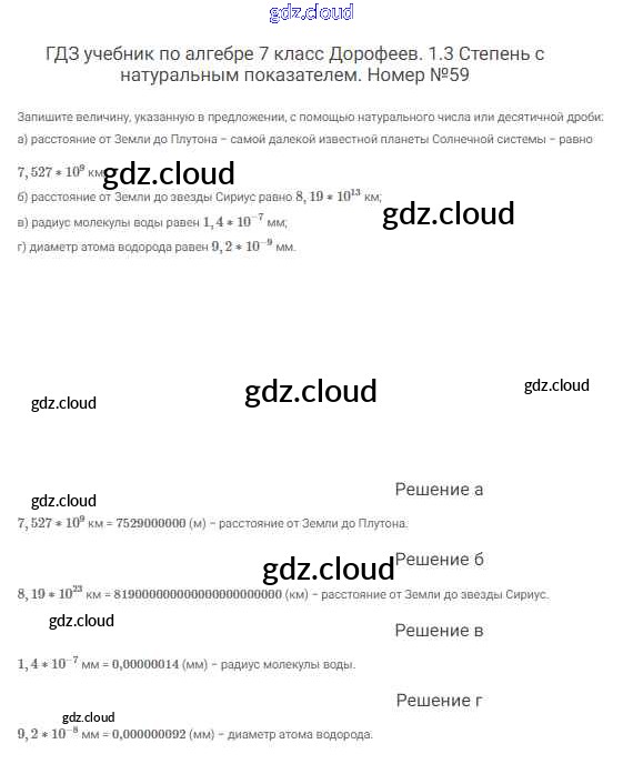 Ответ на задание 59 Учебник Алгебра  за 7 (седьмой) класс Дорофеев, Суворова, Бунимович Академический школьный учебник  2020