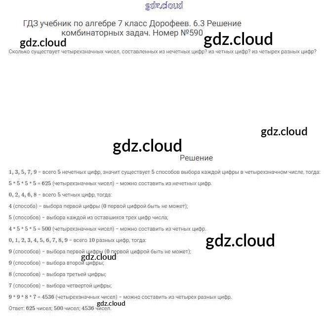Ответ на задание 590 Учебник Алгебра за 7 (седьмой) класс Дорофеев, Суворова, Бунимович Академический школьный учебник 2020