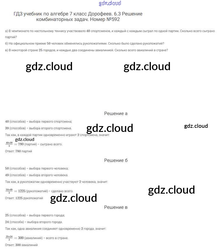 Ответ на задание 592 Учебник Алгебра  за 7 (седьмой) класс Дорофеев, Суворова, Бунимович Академический школьный учебник  2020
