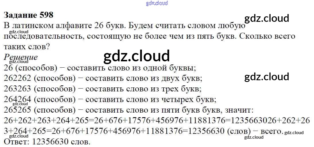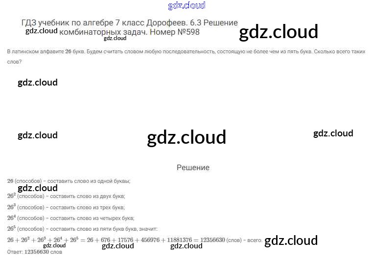 Ответ на задание 598 Учебник Алгебра  за 7 (седьмой) класс Дорофеев, Суворова, Бунимович Академический школьный учебник  2020