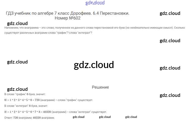 Ответ на задание 602 Учебник Алгебра  за 7 (седьмой) класс Дорофеев, Суворова, Бунимович Академический школьный учебник  2020