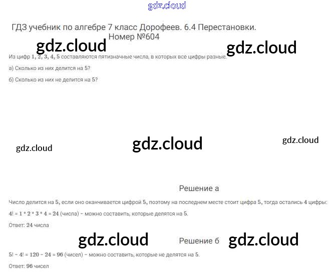 Ответ на задание 604 Учебник Алгебра  за 7 (седьмой) класс Дорофеев, Суворова, Бунимович Академический школьный учебник  2020