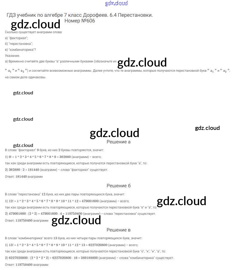 Ответ на задание 606 Учебник Алгебра  за 7 (седьмой) класс Дорофеев, Суворова, Бунимович Академический школьный учебник  2020