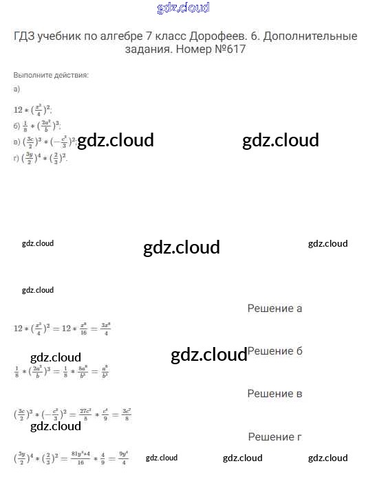 Ответ на задание 617 Учебник Алгебра  за 7 (седьмой) класс Дорофеев, Суворова, Бунимович Академический школьный учебник  2020