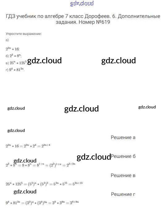 Ответ на задание 619 Учебник Алгебра  за 7 (седьмой) класс Дорофеев, Суворова, Бунимович Академический школьный учебник  2020