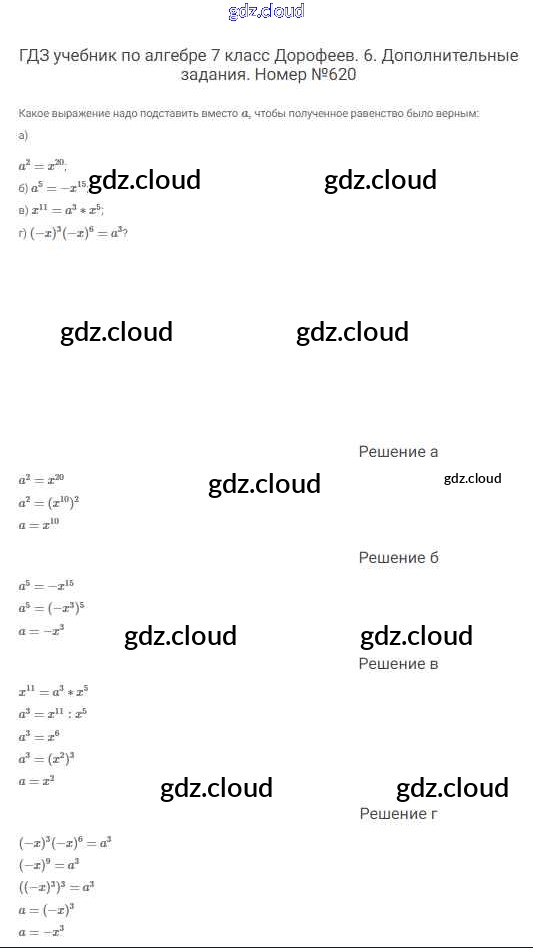 Ответ на задание 620 Учебник Алгебра  за 7 (седьмой) класс Дорофеев, Суворова, Бунимович Академический школьный учебник  2020