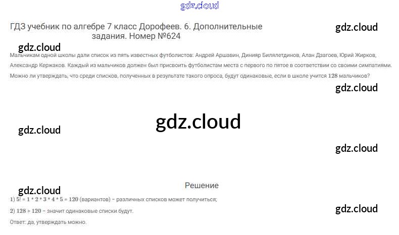 Ответ на задание 624 Учебник Алгебра  за 7 (седьмой) класс Дорофеев, Суворова, Бунимович Академический школьный учебник  2020