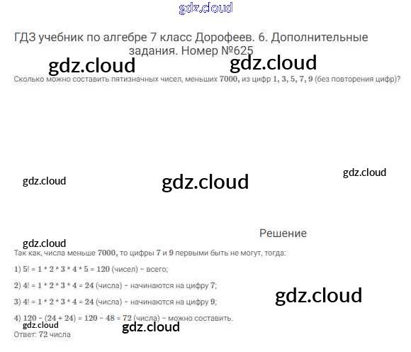 Ответ на задание 625 Учебник Алгебра за 7 (седьмой) класс Дорофеев, Суворова, Бунимович Академический школьный учебник 2020