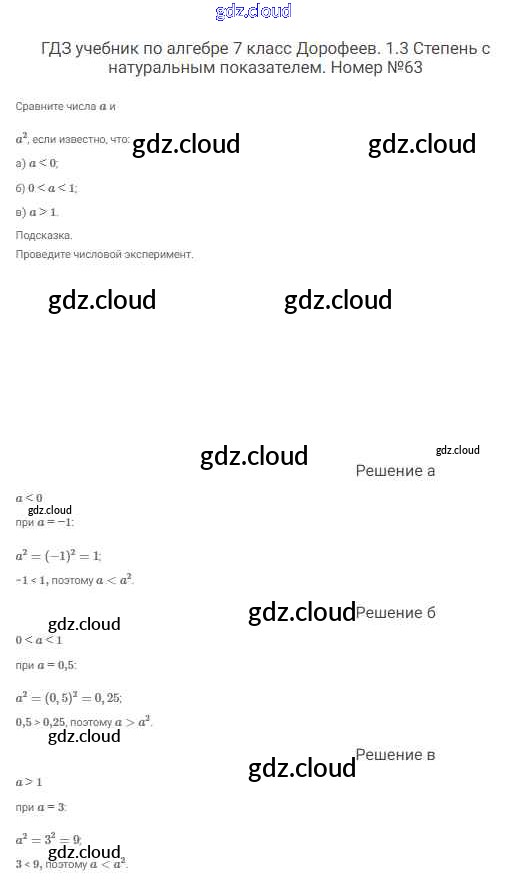 Ответ на задание 63 Учебник Алгебра  за 7 (седьмой) класс Дорофеев, Суворова, Бунимович Академический школьный учебник  2020