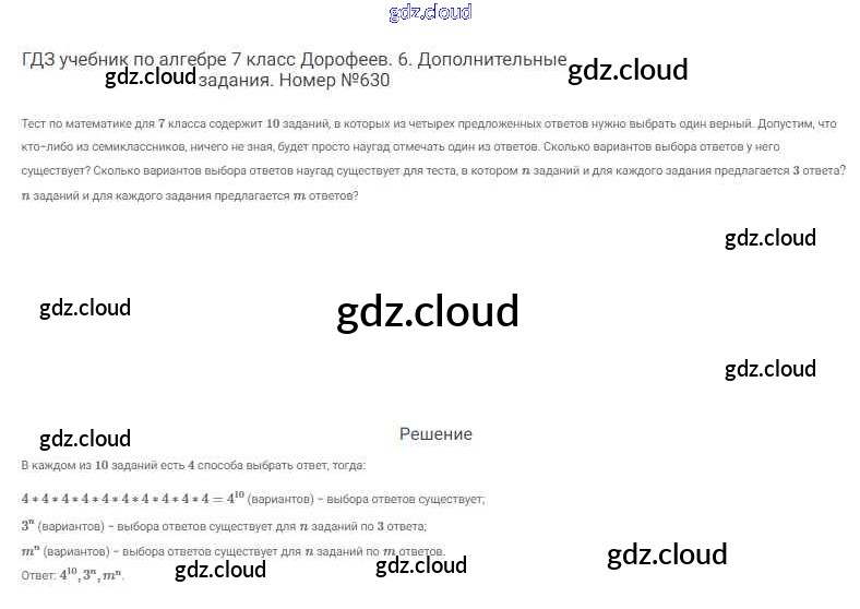Ответ на задание 630 Учебник Алгебра  за 7 (седьмой) класс Дорофеев, Суворова, Бунимович Академический школьный учебник  2020