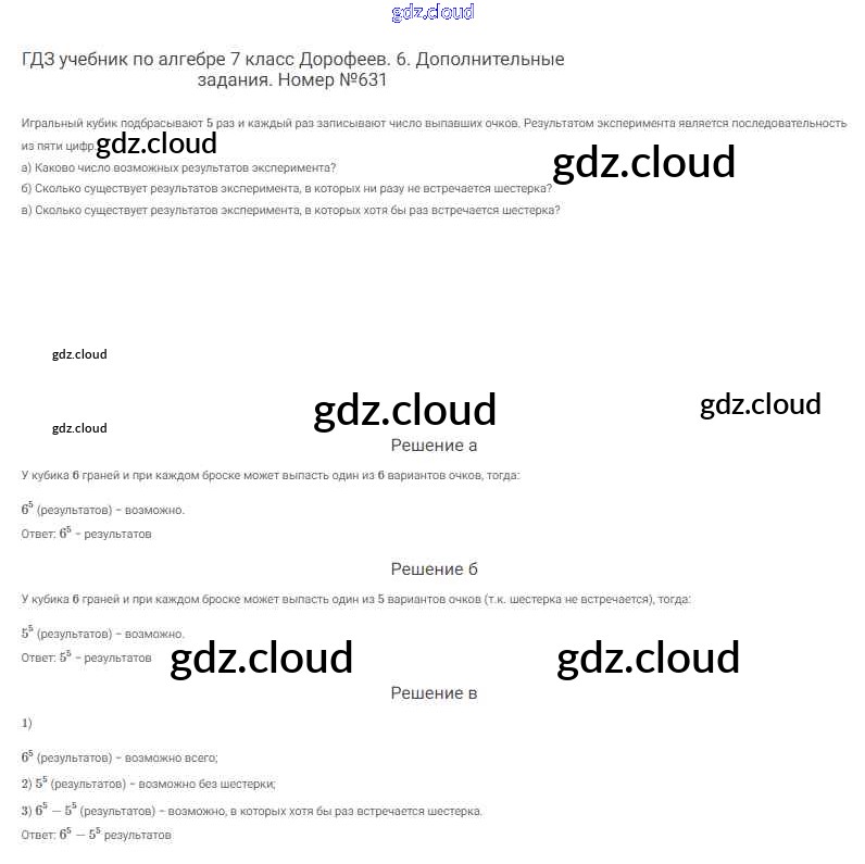 Ответ на задание 631 Учебник Алгебра  за 7 (седьмой) класс Дорофеев, Суворова, Бунимович Академический школьный учебник  2020