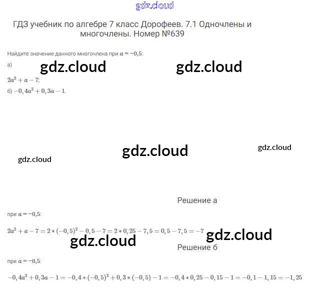 Ответ на задание 639 Учебник Алгебра  за 7 (седьмой) класс Дорофеев, Суворова, Бунимович Академический школьный учебник  2020