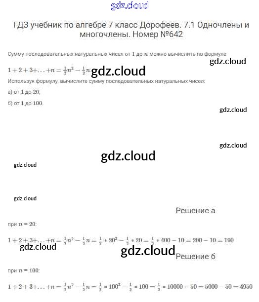 Ответ на задание 642 Учебник Алгебра  за 7 (седьмой) класс Дорофеев, Суворова, Бунимович Академический школьный учебник  2020