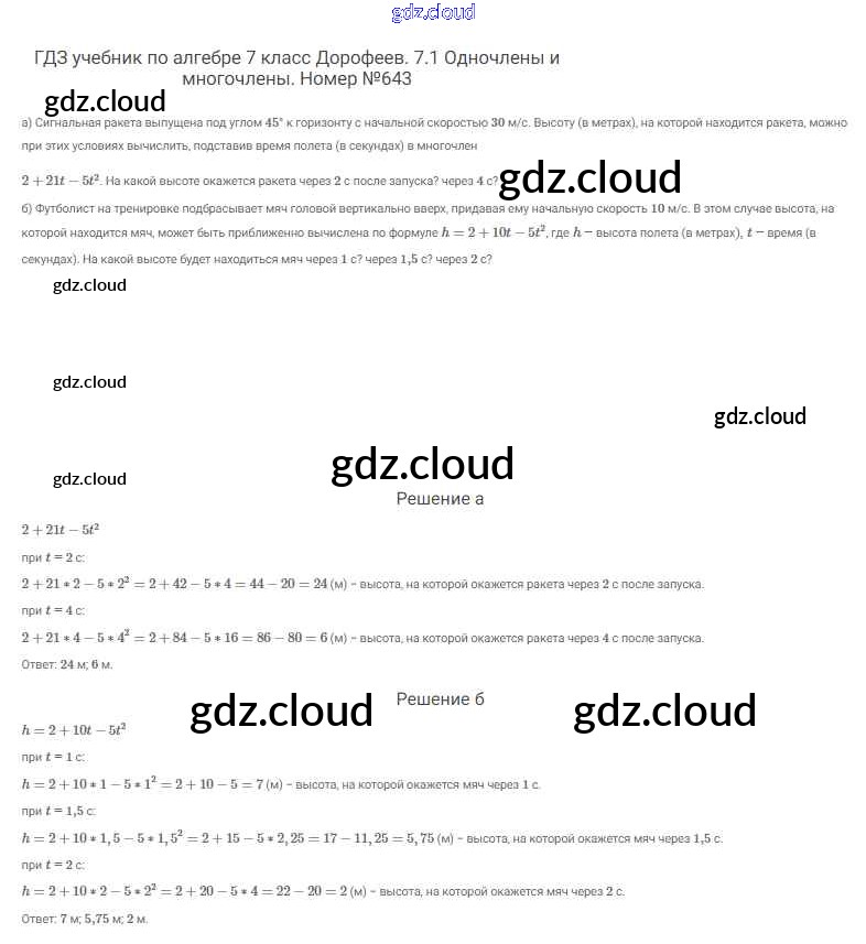 Ответ на задание 643 Учебник Алгебра  за 7 (седьмой) класс Дорофеев, Суворова, Бунимович Академический школьный учебник  2020