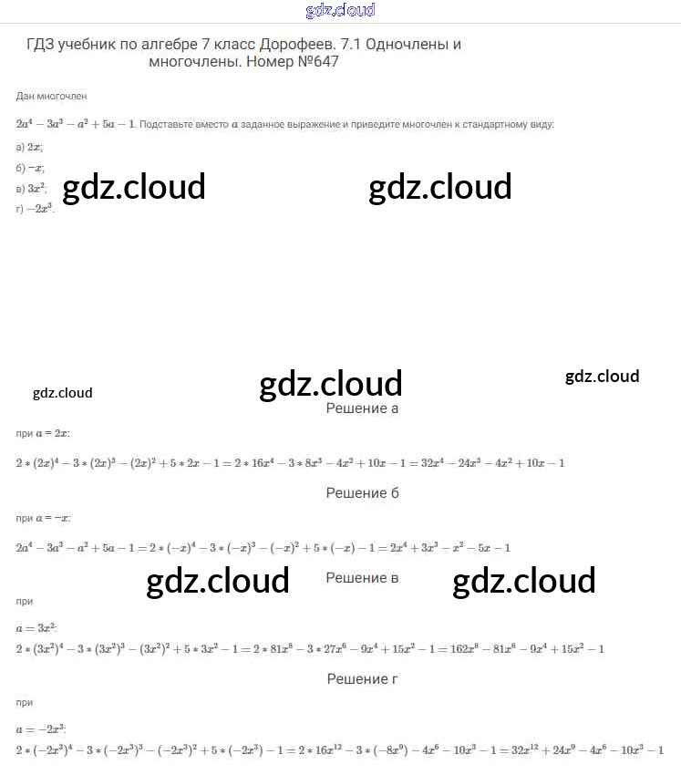 Ответ на задание 647 Учебник Алгебра  за 7 (седьмой) класс Дорофеев, Суворова, Бунимович Академический школьный учебник  2020