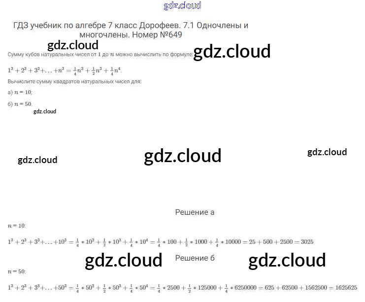 Ответ на задание 649 Учебник Алгебра  за 7 (седьмой) класс Дорофеев, Суворова, Бунимович Академический школьный учебник  2020