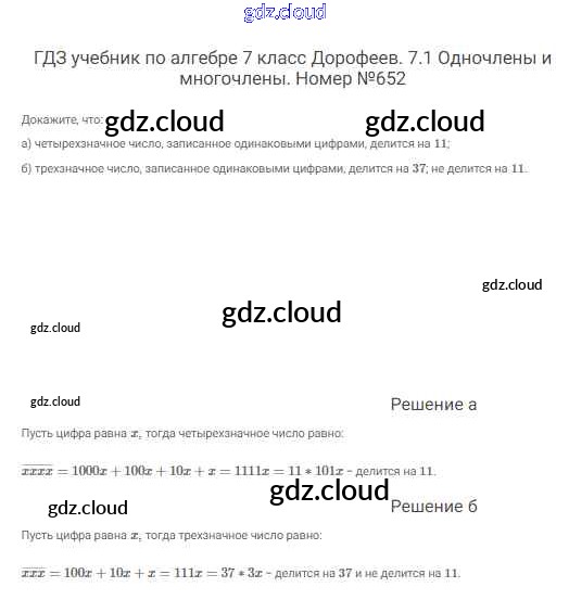 Ответ на задание 652 Учебник Алгебра  за 7 (седьмой) класс Дорофеев, Суворова, Бунимович Академический школьный учебник  2020