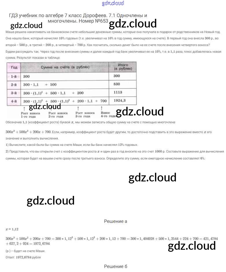 Ответ на задание 653 Учебник Алгебра  за 7 (седьмой) класс Дорофеев, Суворова, Бунимович Академический школьный учебник  2020