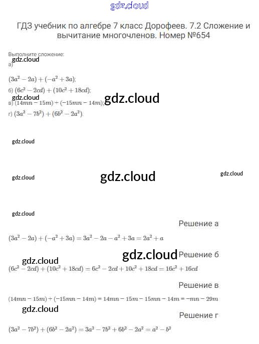 Ответ на задание 654 Учебник Алгебра  за 7 (седьмой) класс Дорофеев, Суворова, Бунимович Академический школьный учебник  2020