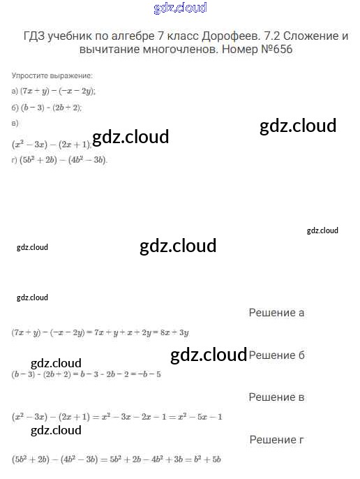 Ответ на задание 656 Учебник Алгебра  за 7 (седьмой) класс Дорофеев, Суворова, Бунимович Академический школьный учебник  2020