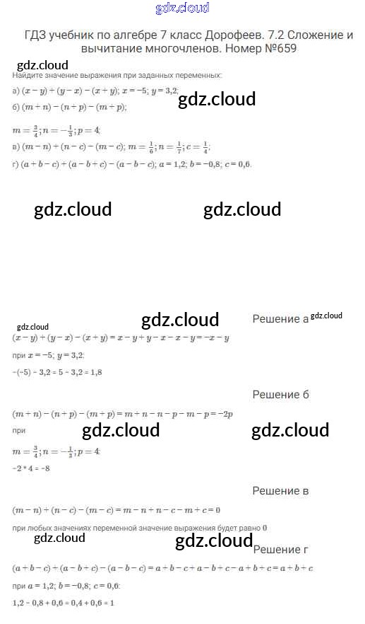 Ответ на задание 659 Учебник Алгебра  за 7 (седьмой) класс Дорофеев, Суворова, Бунимович Академический школьный учебник  2020
