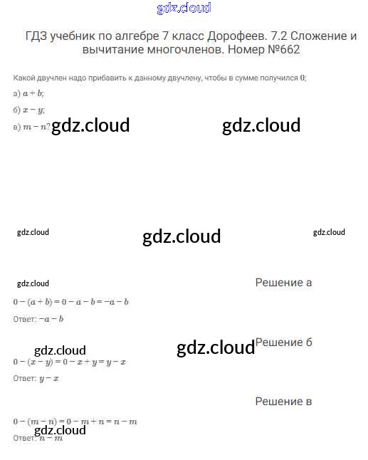 Ответ на задание 662 Учебник Алгебра  за 7 (седьмой) класс Дорофеев, Суворова, Бунимович Академический школьный учебник  2020