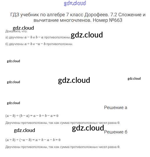 Ответ на задание 663 Учебник Алгебра  за 7 (седьмой) класс Дорофеев, Суворова, Бунимович Академический школьный учебник  2020