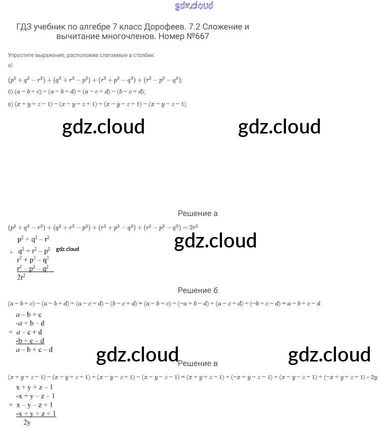 Ответ на задание 667 Учебник Алгебра  за 7 (седьмой) класс Дорофеев, Суворова, Бунимович Академический школьный учебник  2020