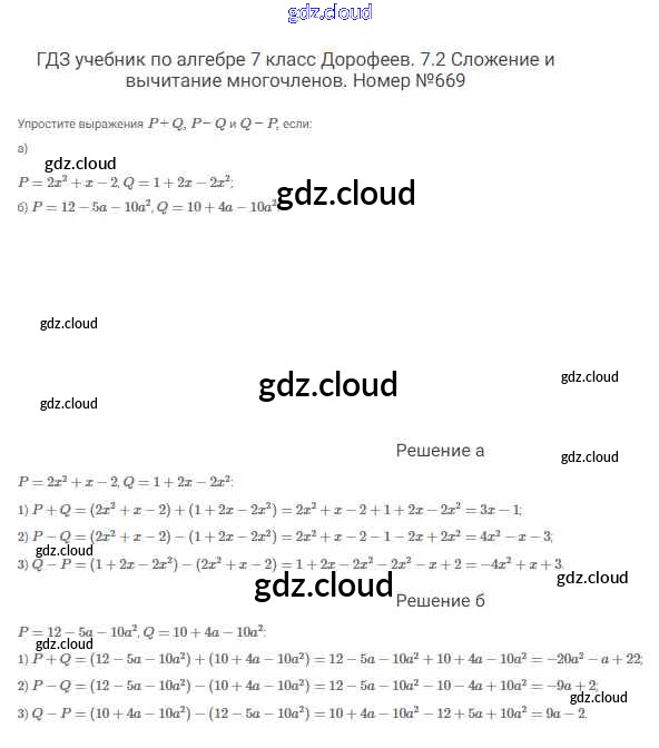 Ответ на задание 669 Учебник Алгебра  за 7 (седьмой) класс Дорофеев, Суворова, Бунимович Академический школьный учебник  2020