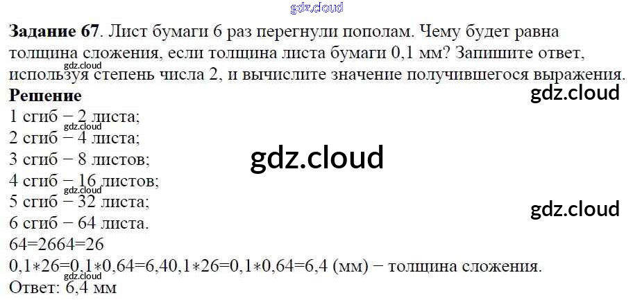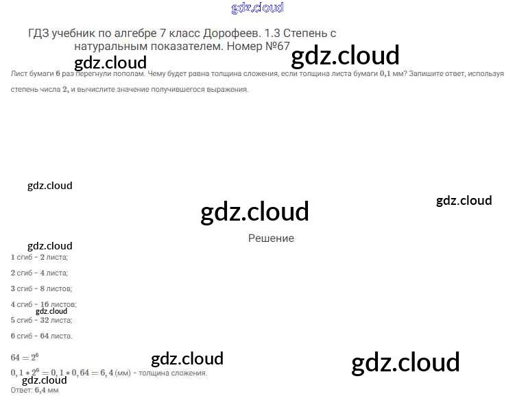 Ответ на задание 67 Учебник Алгебра  за 7 (седьмой) класс Дорофеев, Суворова, Бунимович Академический школьный учебник  2020