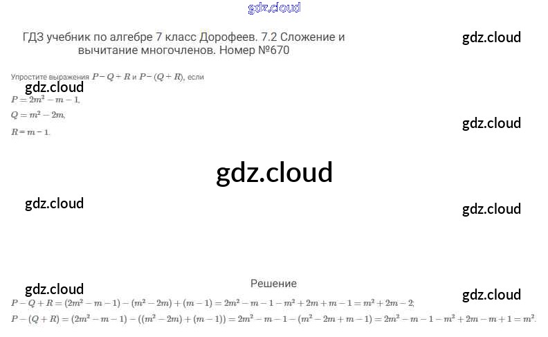 Ответ на задание 670 Учебник Алгебра  за 7 (седьмой) класс Дорофеев, Суворова, Бунимович Академический школьный учебник  2020