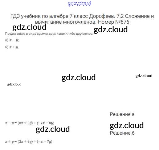 Ответ на задание 676 Учебник Алгебра  за 7 (седьмой) класс Дорофеев, Суворова, Бунимович Академический школьный учебник  2020