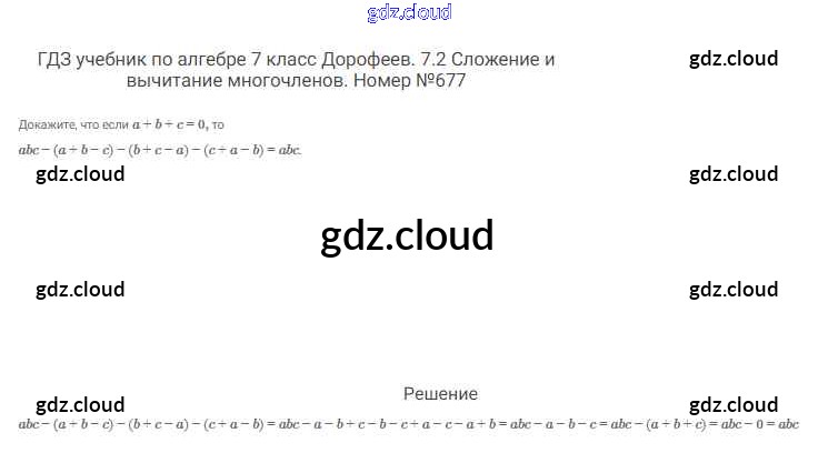 Ответ на задание 677 Учебник Алгебра за 7 (седьмой) класс Дорофеев, Суворова, Бунимович Академический школьный учебник 2020