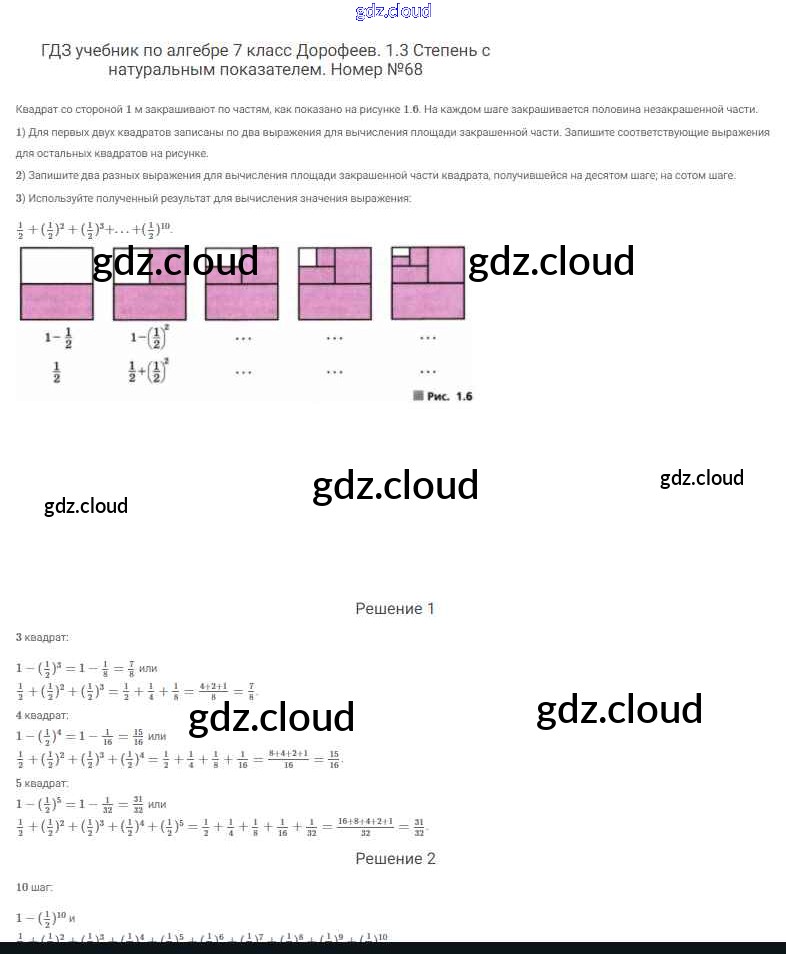 Ответ на задание 68 Учебник Алгебра  за 7 (седьмой) класс Дорофеев, Суворова, Бунимович Академический школьный учебник  2020