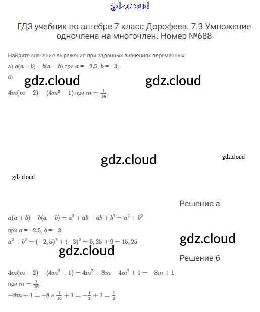 Ответ на задание 688 Учебник Алгебра  за 7 (седьмой) класс Дорофеев, Суворова, Бунимович Академический школьный учебник  2020
