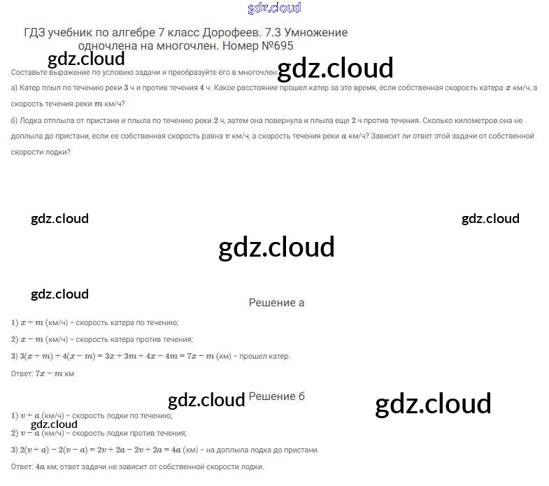 Ответ на задание 695 Учебник Алгебра  за 7 (седьмой) класс Дорофеев, Суворова, Бунимович Академический школьный учебник  2020