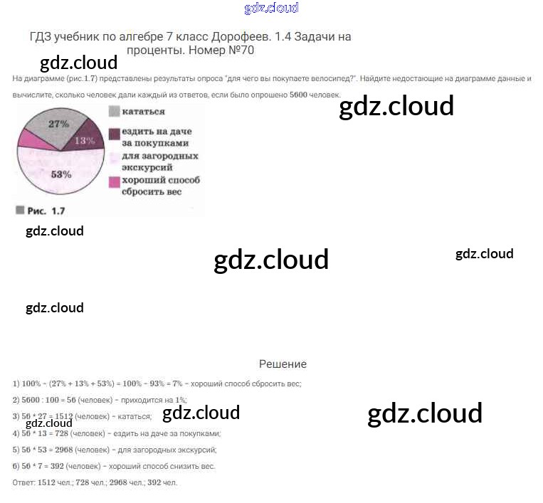 Ответ на задание 70 Учебник Алгебра  за 7 (седьмой) класс Дорофеев, Суворова, Бунимович Академический школьный учебник  2020