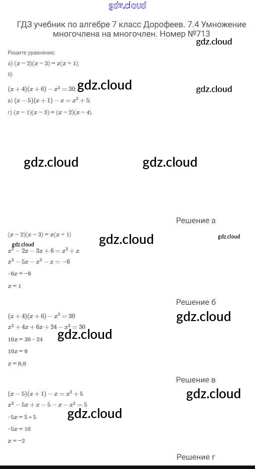 Ответ на задание 713 Учебник Алгебра  за 7 (седьмой) класс Дорофеев, Суворова, Бунимович Академический школьный учебник  2020