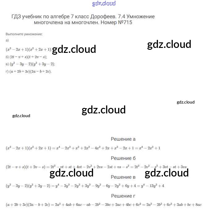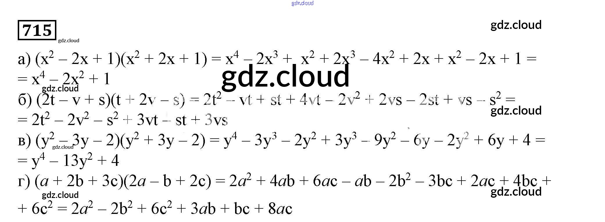 Ответ на задание 715 Учебник Алгебра за 7 (седьмой) класс Дорофеев, Суворова, Бунимович Академический школьный учебник 2020