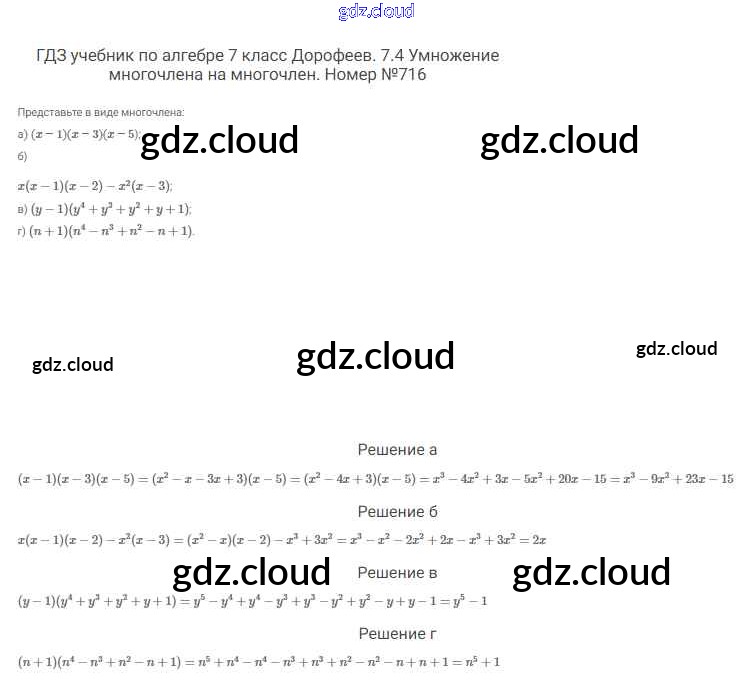 Ответ на задание 716 Учебник Алгебра за 7 (седьмой) класс Дорофеев, Суворова, Бунимович Академический школьный учебник 2020