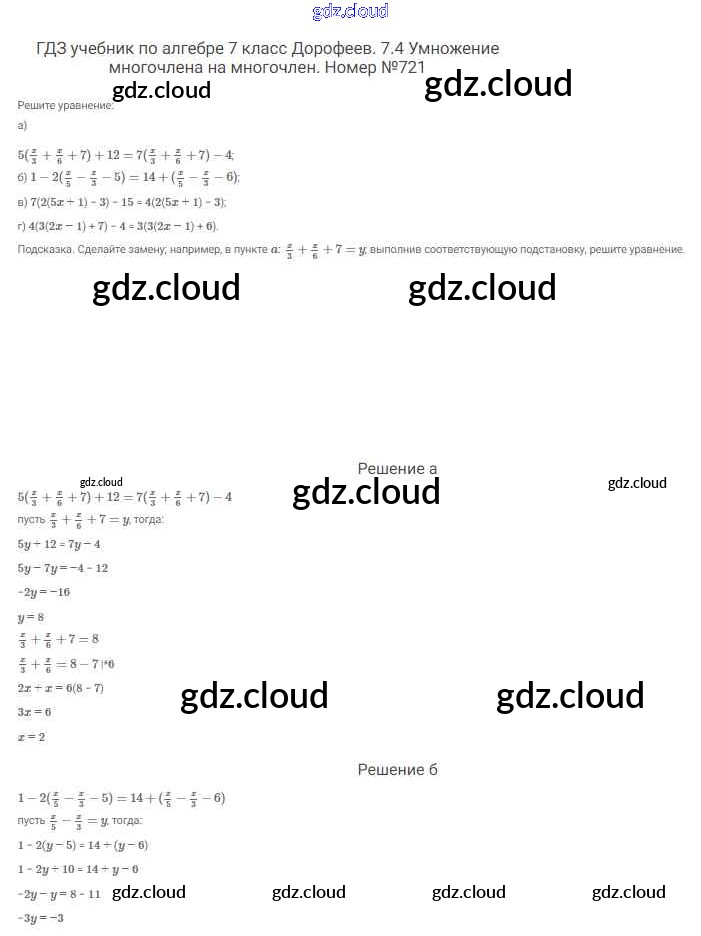 Ответ на задание 721 Учебник Алгебра  за 7 (седьмой) класс Дорофеев, Суворова, Бунимович Академический школьный учебник  2020