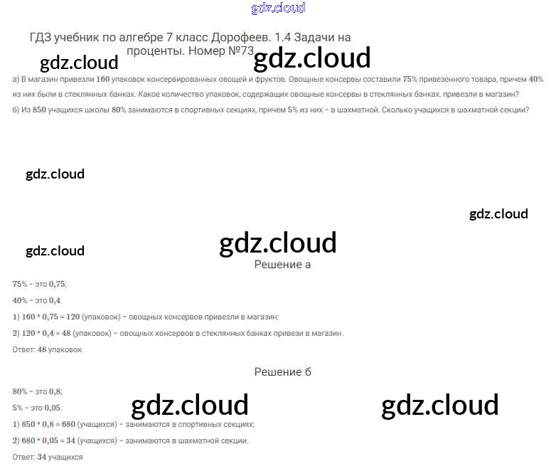 Ответ на задание 73 Учебник Алгебра  за 7 (седьмой) класс Дорофеев, Суворова, Бунимович Академический школьный учебник  2020