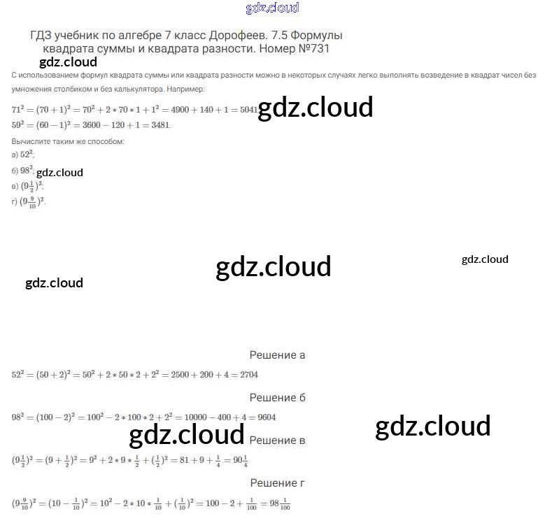 Ответ на задание 731 Учебник Алгебра  за 7 (седьмой) класс Дорофеев, Суворова, Бунимович Академический школьный учебник  2020