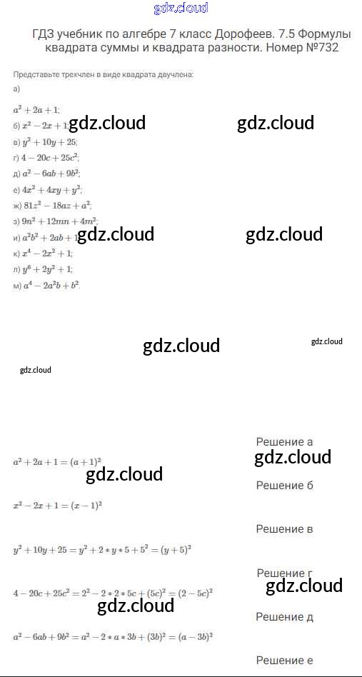 Ответ на задание 732 Учебник Алгебра  за 7 (седьмой) класс Дорофеев, Суворова, Бунимович Академический школьный учебник  2020
