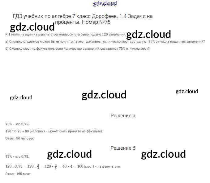 Ответ на задание 75 Учебник Алгебра  за 7 (седьмой) класс Дорофеев, Суворова, Бунимович Академический школьный учебник  2020