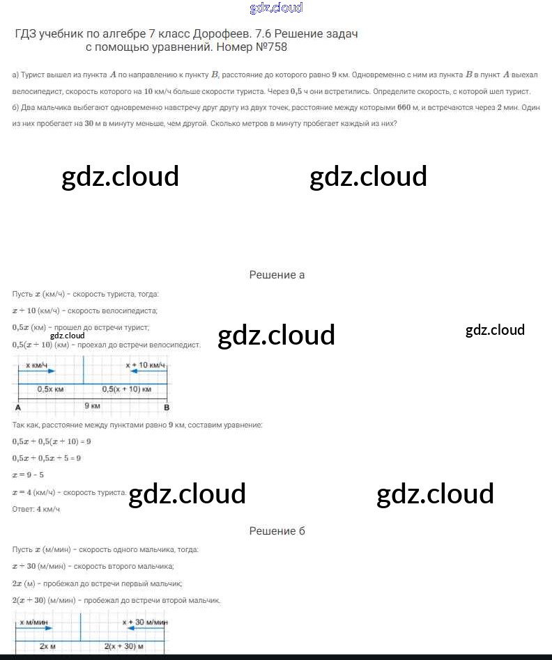 Ответ на задание 758 Учебник Алгебра за 7 (седьмой) класс Дорофеев, Суворова, Бунимович Академический школьный учебник 2020